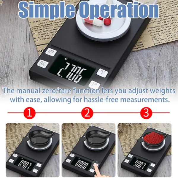 Præcision omdefineret: Vores skala kan prale af en bemærkelsesværdig nøjagtighed på 100g/0,001g, hvilket sikrer, at du får de mest præcise målinger hver gang.