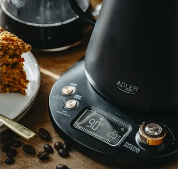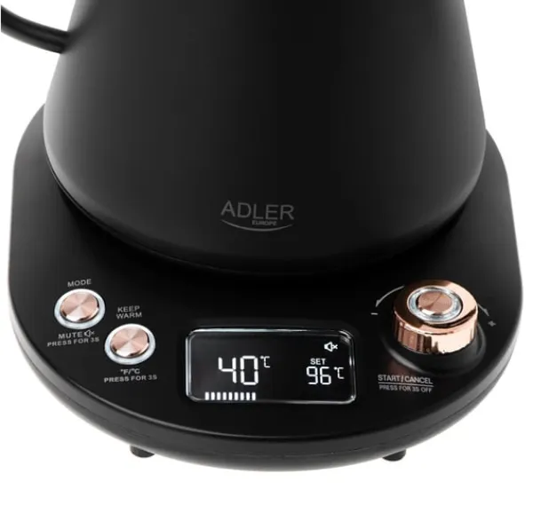 Andre funktioner: Temperaturkontrol: Præcis temperaturkontrol til kogende vand i området fra 40 C til 100 C; LED display; Max 120 minutter holde varmen funktion