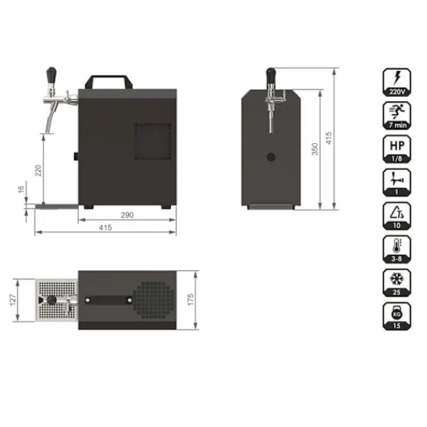 Fadølsanlæg, Øldispenser JET 30K: Til en øl med det perfekte skum og temperatur Perfekt afkølet øl uden CO2 JET 30K-dispenseren er den ideelle løsning til enhver, der er på udkig efter en tørkøleanordning, der kan holde øllen lækkert afkølet helt uden CO2. Takket være den indbyggede flowkøler og tørkøleteknologi vil din øl altid have den perfekte temperatur og skum. Ud over at skabe den perfekte øl oplever du ingen opsprøjtning, hvilket giver dig en optimal øloplevelse. Effektiv og hurtig •JET 30K kan dispensere op til 30 liter øl i timen og sørger for en hurtig og nem betjening. •Den kontinuerlige køler- og tørkøleteknologi sikrer, at dispenseren er klar til brug på et øjeblik. •Dispensingssystemet bruger op til 45 % mindre energi end andre modeller, hvilket sparer dig for penge på din elregning. Mobil og holdbar •Takket være luftpumpen kan dispenseren bruges mobilt, så du kan tage den med dig på alle dine eventyr og til alle dine fester. •JET 30K er lavet af rustfrit stål af høj kvalitet, der sikrer, at anlægget kan holde i mange år. Nem at rengøre og vedligeholde •Dispenseringssystemet er nemt at rengøre og kan hurtigt gøres klar til brug igen. •Den indbyggede termostat sørger for, at øllet altid holdes på den rigtige temperatur, så du kan nyde en lækker og frisk øl, hver gang du hælder op. •Med en kapacitet på 30 liter i timen er anlægget også ideelt til mindre begivenheder og fester. •JET 30K kan betjenes uden brug af CO2, og det gør det lettere for dig at invitere dine venner til en ølfest, uden at skulle bekymre dig om små flasker eller store tanke. •Fadølsanlægget er designet for at give dig en problemfri oplevelse, uanset om du bruger det i et hjem, i en bar eller på picnic. JET 30K-dispenseringsanlægget vil give dig den bedste øloplevelse og er din trofaste ledsager til enhver lejlighed. Blandt kunderne, der allerede har købt JET 30K, er der meget positiv feedback, da den giver dem muligheden for at nyde øllet på en helt ny måde, og give dem mulighed for altid at have øl ved hånden.