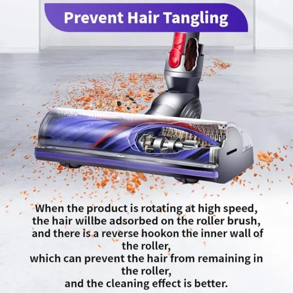 Anti-filtre teknologi: Støvsugermundstykket har et specielt anti-tangle design på børsten for at forhindre hår og fibre i at vikle sig omkring og reducere rengøringsydelsen. Dette sikrer et kontinuerligt kraftigt sug uden behov for hyppig rengøring.