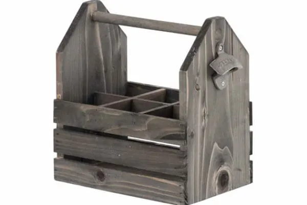 Denne robuste flaskeholder i trendy landstedsstil med en smart integreret flaskeåbner i metal er et absolut blikfang! Denne trendy flaskeholder er lavet af robust træ fra blåklokkefamilien (Paulownia) og har plads til op til 6 flasker. Flaskerne er nemme at tage med overalt: til terrassen, haven, parken eller mens du shopper. Det runde håndtag ligger behageligt i hånden og skærer ikke ind i huden. Beer Caddy er den perfekte gave til festdeltagere og ølkendere til fødselsdage, jul, fars dag og mange andre lejligheder.