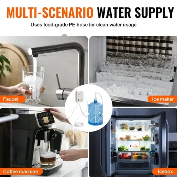 Dette pumpesystem er alsidigt og kan bruges sammen med flaskevand til vandhaner, køleskabe, ismaskiner og kaffemaskiner. Det giver mulighed for at forbedre livskvaliteten ved nemt at sikre rent og sikkert vand til hele familien.
