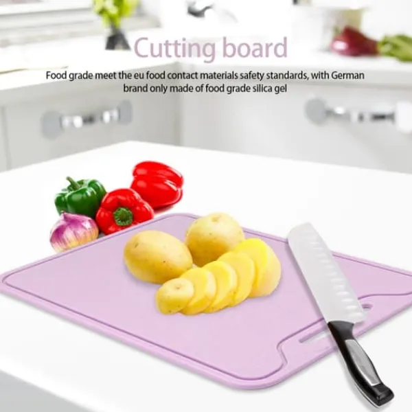Stand: 100% helt ny Varetype: Skærebræt Materiale: Silikone Farve: Lilla Produktstørrelse: Ca. 30 x 22 cm / 11,8 x 8,7 tommer Vægt: Ca. 300 g / 10,6 oz Pakkeliste: