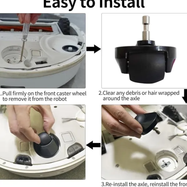 Nem installation: Udskiftning af din Roborocks forreste hjul, der er kompatibelt med Roborock S6, S5 Max og E4-serien, er en leg med denne brugervenlige reservedel. Det enkle design giver mulighed for hurtig og nem installation, der ikke kræver specialværktøj eller teknisk ekspertise. Fjern blot det gamle hjul, og klik det nye på plads. Denne problemfri installationsproces sparer dig tid og kræfter, så du kan få din Roborock op at køre igen på ingen tid. Hold din Roborock kørende optimalt med dette letinstallerbare forreste hjul, der sikrer et konsekvent rent hjem uden frustration over komplicerede reparationer.