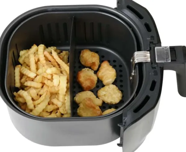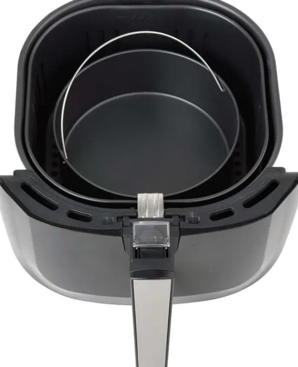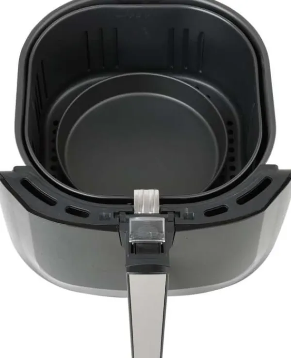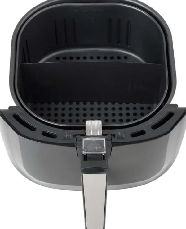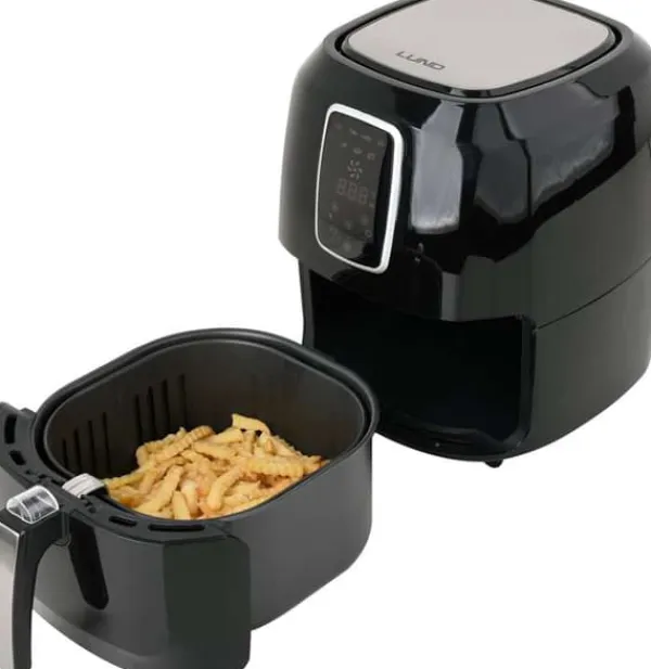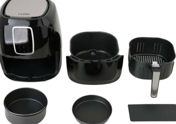 Tekniske data: Driftstemperaturområde: 80~200 °C Sættet indeholder: frituregryde | brødform | pizzapande | Maddeler Vægt: 5,3 kg Spænding: 220-240 V AC Effekt: 1800 W Ledningslængde: 1 m Skærmtype: LCD Digitalt kontrolpanel: ja Frekvens: 50/60 Hz Elektrisk isoleringsklasse: I Funktioner: optøning | opvarmning | bagning | stegning | Grillning Automatisk tænd/sluk: ja Overophedningsbeskyttelse: ja Temperaturkontrol: Ja Driftstid: 0-60 min Tidsindstilling (timer): ja Akustisk signal: ja Skålkapacitet: 8 l Kurvkapacitet: 5,2 l Udvendige mål for apparatet klar til drift: 310x380x365 mm Tåler opvaskemaskine: ja Non-stick belægning: ja Programmer: pommes frites | ribben | rejer | kage | fjerkræ | kød | fisk Multifunktionel fedtfri frituregryde, , som ikke kun steger, men også optøer, varmer, bager og griller. Frituregryden anbefales til tilberedning af pommes frites, kød, fisk, grøntsager og småkager. 1800 W effekt giver dig mulighed for hurtigt at tilberede måltider Op til 80 % mindre fedt end en standard frituregryde Kurvkapacitet: 5,2 l Skålkapacitet: 8 l Hurtig opvarmning og jævn varmefordeling Intuitiv temperaturregulering (80 – 200 °C) og tidsregulering (0 – 60 min) Digitalt LED-panel med berøringsskærm 7 programmer Non-stick belægning på skål og kurv Nem rengøring – tilbehør tåler opvaskemaskine Automatisk slukning, når frituregryden når den rette temperatur, og genoptager driften, når temperaturen falder Indikatorlampe Lydsignal, når opvarmningen er færdig Overophedningsbeskyttelse Dobbelt håndtagslås forhindrer, at kurven løsner sig fra skålen Kabellængde: 1 m Frituregrydens dimensioner: 31 x 38 x 36,5 (længde x bredde x højde) Elementer i rustfrit stål på kabinettet TILBEHØR: stegepande f.eks. til pizza (diameter: 180 mm) gryde til bagning af f.eks. brød (diameter: 185 mm) maddeler kurv (mål: 230 x 240 mm) STEGNING MED BRUG AF LUFT – Frituregrydens konturerede form og konvektionsluft sikrer, at maden varmes jævnt op, hvilket gør den sprød på ydersiden og mør på indersiden. STEGNING AF MAD UDEN OLIE – Brug en lille mængde olie eller slet ingen olie. UDVALG AF RETTER – Takket være skålen og kurven med forskellige strukturer og et bredt temperaturområde på 80-200°C kan du tilberede en række forskellige retter. SUNDERE VALG – I modsætning til traditionelle frituregryder kræver den ikke friturestegning, hvilket giver mulighed for meget sundere madtilberedning. Spis sundt og lækkert Tips til brug af en airfryer: Brug af en airfryer til at tilberede mad giver fordele i forhold til at tilberede mad i en traditionel ovn eller friturestegning. Sænker kolesterol. Ved at bruge tvungen luftcirkulation reduceres madens fedtindhold, og kolesterolindholdet sænkes. Sparer tid og energi. Takket være den høje effektivitet af den tvungne luftmetode til madtilberedning er det muligt at reducere tid og energi. Bevarer smagen. For lang og for høj temperatur kan nemt fratage maden sin smag. Nem kontrol af tid og temperatur kan løse dette problem. At tilføje en lille mængde fedt til din mad vil gøre den sprød. Bland ingredienserne halvvejs gennem tilberedningstiden for at sikre, at de varmes jævnt op. Airfryer Brødform Pizzaform Maddeler ** Illustrative fotos.