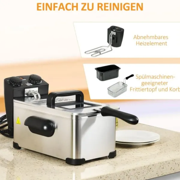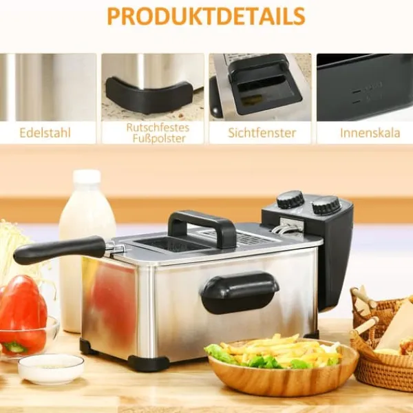 Denne frituregryde i rustfrit stål tilbyder en bekvem måde at tilberede sprøde friturestegte retter derhjemme med justerbar temperaturkontrol og sikkerhedstimer. Dens aftagelige oliebeholder og opvaskemaskinevenlige dele gør rengøringen nem, mens sikkerhedsfunktionerne sikrer bekymringsfri madlavning.