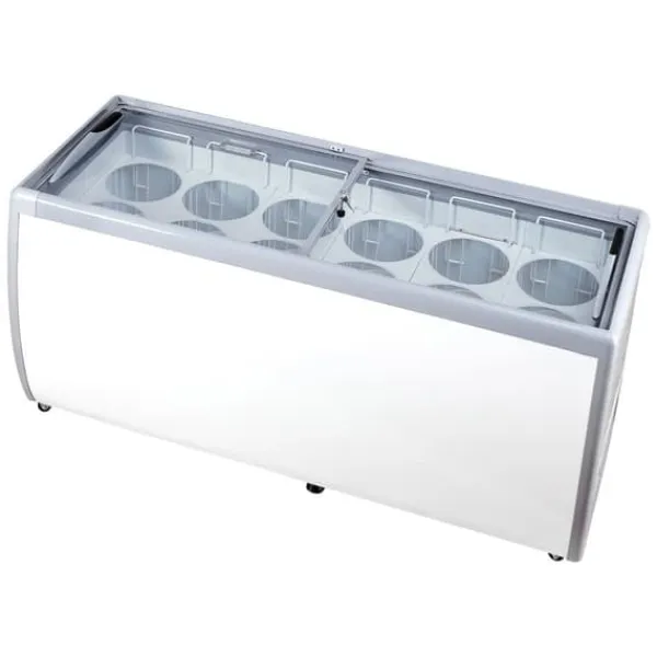 Denne kommercielle ismontre kan rumme 12 store isbaljer og har LED-båndbelysning og en højsynlighedsdør i hærdet glas for at forbedre displayeffekten. Kunderne kan nemt vælge deres yndlingsis.