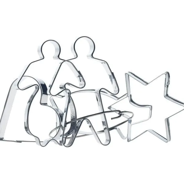 Tillverkad i rostfritt stål, kan diskas i diskmaskin. Ingår 5 st traditionella figurer.