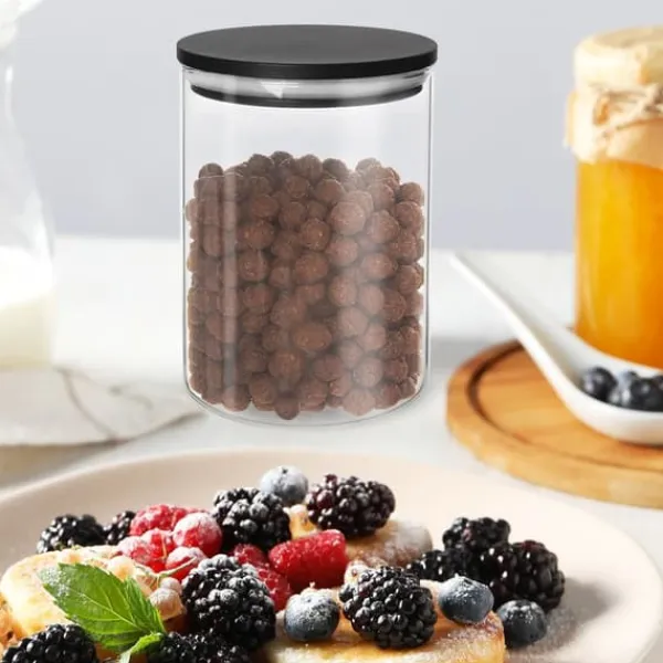 ✅ TIL OPBEVARING – Køkkenbeholder til opbevaring af løse fødevarer med låg og forsegling. Beholderen har en højde på 12 cm, en diameter på 9 cm og en kapacitet på 600 ml.