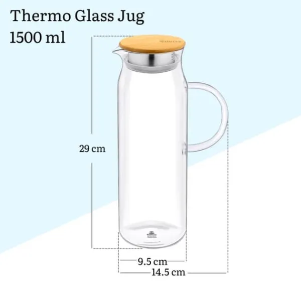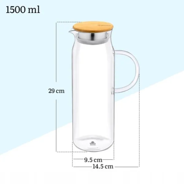 Glaskanden er lavet af specielt varmebestandigt glas, der tåler høje temperaturer. I en sådan kande kan du tilberede kompot direkte på komfuret. Derudover holder kanden sig godt kølig, og du kan servere kold limonade. Toppen af kanden er dekoreret med et originalt naturligt bambuslåg, der understreger dens moderne design.