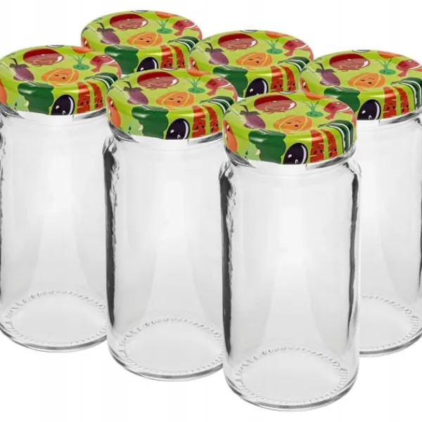 Sæt med 6 krukker med en kapacitet på 90 ml med dekorative låg – perfekte til hjemmelavede juicer af dine yndlingsfrugter direkte fra frugtplantagen og haven og dine yndlingskrydderier. Elegante og farverige låg vil fremhæve smagen og fyldigheden af hvert fyldt glas.