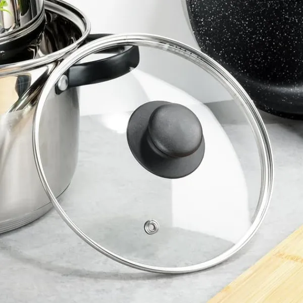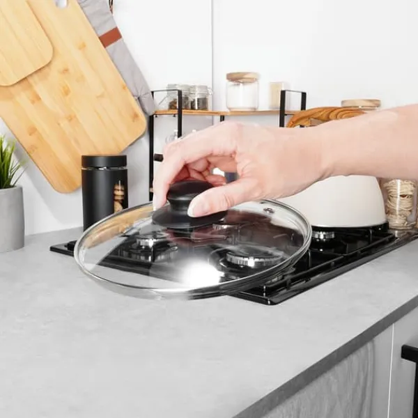 ✅ GLAS – Låget er lavet af varmebestandigt, transparent glas. Det har en sølvfarvet rustfri stålkant og et holdbart sort plastikhåndtag. Det transparente låg giver dig mulighed for at kontrollere tilberedningsprocessen uden at skulle løfte det. Låget er modstandsdygtigt over for høje temperaturer op til +200°C.
