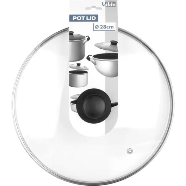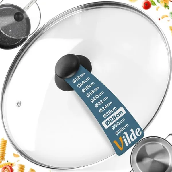 Universal glaslåg, der passer perfekt til fade, stegepander og gryder med en diameter på 28 cm. Lavet af holdbare og solide materialer. Det vil være et godt supplement til en gryde eller stegepande, der ikke fulgte med låg. Den klassiske form sikrer komfortabel brug. Et låg er uundværligt i ethvert køkken. Det hjælper maden med at tilberede hurtigere og beskytter mod stænkvand og fedt. Derudover hjælper låget med at holde maden varm længere. Originalt Vilde-produkt. Fremstillet i overensstemmelse med europæiske standarder.