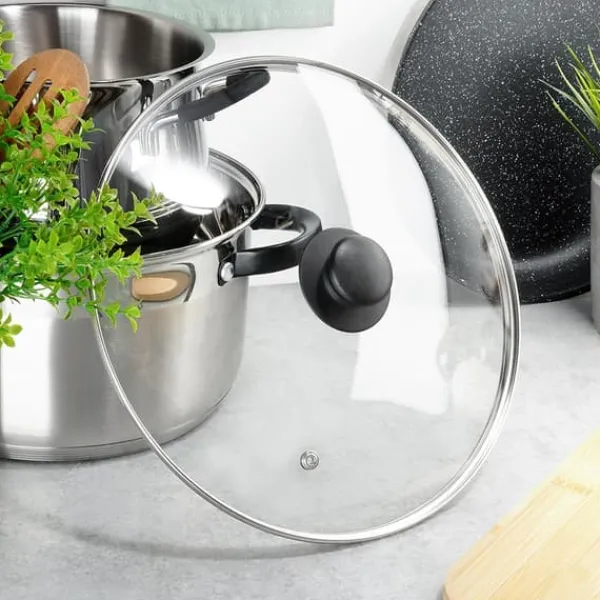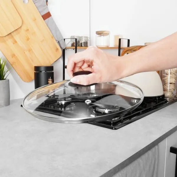 ✅ GLAS – Låget er lavet af varmebestandigt, transparent glas. Det har en sølvfarvet rustfri stålkant og et holdbart sort plastikhåndtag. Det transparente låg giver dig mulighed for at kontrollere tilberedningsprocessen uden at skulle løfte det. Låget er modstandsdygtigt over for høje temperaturer op til +200°C.