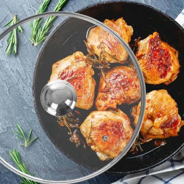 ✅ GLAS – Lavet af varmebestandigt transparent glas, og håndtaget og kanten er lavet af sølvfarvet rustfrit stål. Lågets transparente farve giver dig mulighed for at kontrollere tilberedningsprocessen uden at skulle løfte låget.