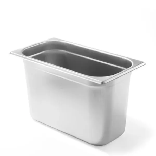 Producentnummer: Hendi 800447 Cateringcontaineren fra Budget Line-serien fra Hendi er et fartøj, der vil fungere godt i restauranter, mælkebarer, madbaner og hoteller. Den er holdbar og kan bruges i varmluftsovne, køleskabe, bain-marie og varmeovne. Egenskaber og tekniske parametre: – Budget Line-serien, – lavet af rustfrit stål, – termisk modstand fra -40 til 300 grader C, – praktisk stabling, – tåler opvaskemaskine, – afrundede kanter gør det lettere at holde rent, – solid konstruktion, – standardstørrelse GN 1/3, – kapacitet: 5,7 l, – godstykkelse fra 0,6 til 0,7 mm, – dimensioner (LxBxH): 325 x 176 x 150 mm. Sættet indeholder: – GN beholder.