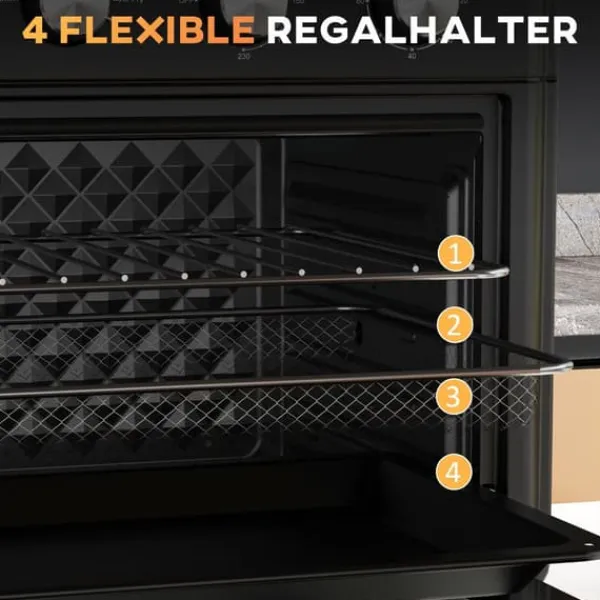 Hurtig og energibesparende: Takket være det moderne konvektionssystem opnår denne lille ovn en sprød skorpe på op til 90 % kortere tid end konventionelle ovne. Nyd hurtigere madlavning, mens du sparer mere energi sammenlignet med konventionelle ovne.