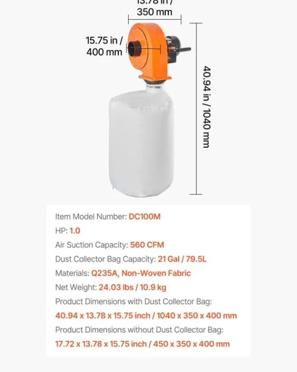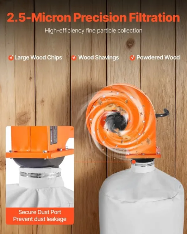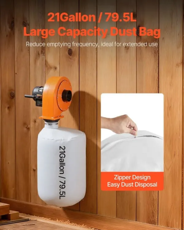 Kraftig og jævn udsugning Den høje luftstrøm på 560 CFM håndterer både groft savsmuld og fint slibestøv, så arbejdsområdet forbliver rent, og maskiner kan køre uden afbrydelser. Den stabile sugekraft øger effektiviteten ved både små og mellemstore opgaver.