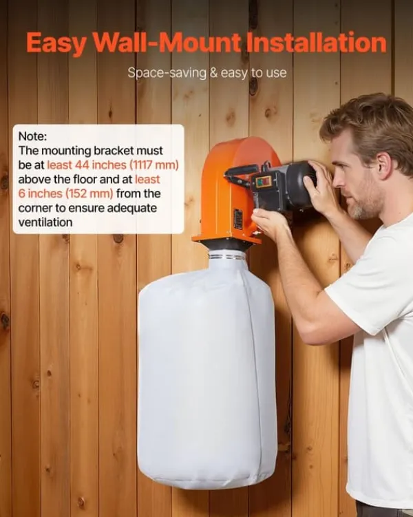 Effektiv vægmonteret støvopsamler til træbearbejdning med kraftig sugeevne på 560 CFM, stor 80 L pose og finfiltrering ned til 2,5 mikron. Hold værkstedet rent, reducer oprydningstiden og arbejd mere effektivt med stabil ydeevne og lavt støjniveau.