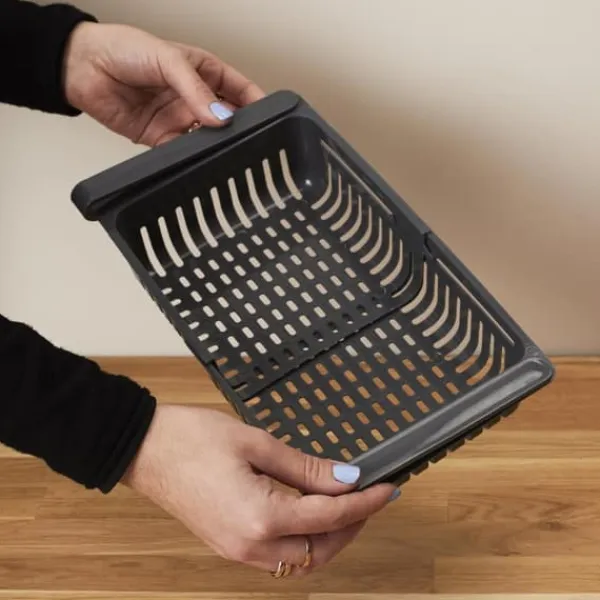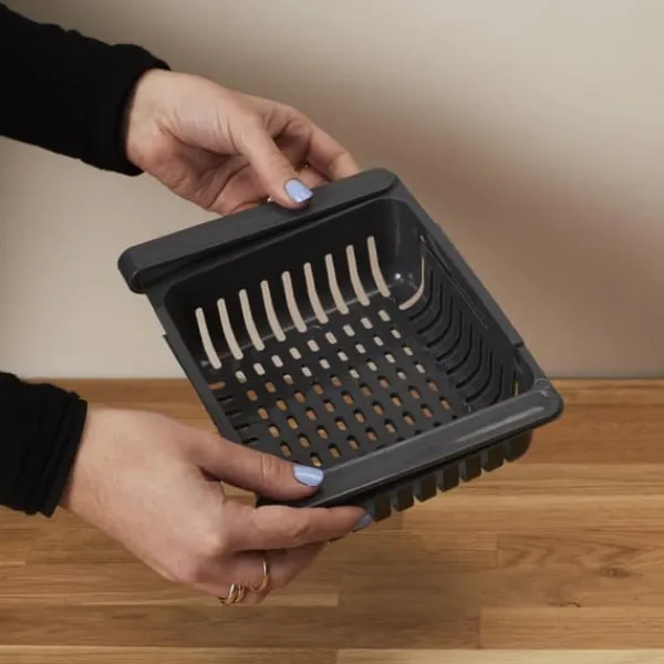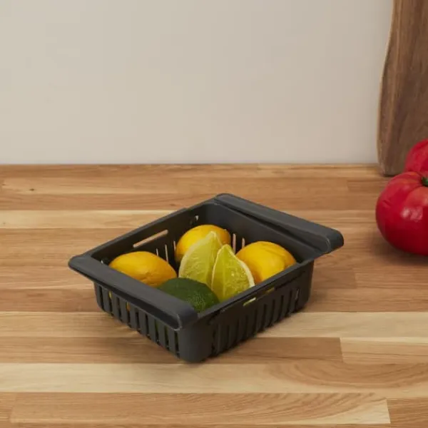 Den hængende kurvi en elegant grå farveer den perfekte løsning for dem, der ønsker at organisere deres plads bedre og holde deres produkter friske.Justerbar bredde(14-24 cm) gør det muligt at passe til ethvert køleskab, ogdybde 20,5 cmgiver god plads til grøntsager, frugt og anden mad. Det gennembrudte designmuliggør fri luftcirkulation, forhindrer fugt og forlænger friskheden af opbevaret mad. Lavetaf slidstærkt polypropylen, det erfugtbestandigog nem at rengøre. Dens moderne design betyder, at kurven ikke kun vilforbedre organisationenmen vil også være en stilfuld tilføjelse til dit køkken.