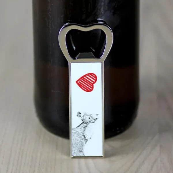 På en dag, der kræver en skål, vil denne åbner gøre fejringen endnu mere behagelig for enhver dyreelsker. Den klassiske oplukker er dekoreret med unik grafik med billedet af en hund, kat eller hest. Produktet har to magneter på bagsiden, takket være hvilke du kan fastgøre gadgetten til køleskabet og altid have den ved hånden. Du kan gøre det endnu mere charmerende ved at sende os et billede af dit kæledyr! Vi udskriver dem i de originale farver eller konverterer dem til “blyantskitse”-versionen, der er synlig i dette tilbud – beslutningen er din.
