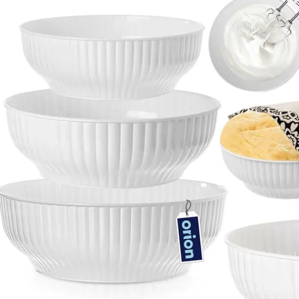 Et sæt med tre køkkenskåle i tre størrelser. Disse køkkenskåle bruges universelt. Nyttige i ethvert hjem, både til hverdagsmadlavning og til særlige lejligheder. Deres enkle og klassiske form vil få dem til at se imponerende ud på bordet. Et originalt produkt fra det tjekkiske mærke Orion. Fremstillet i overensstemmelse med europæiske standarder.