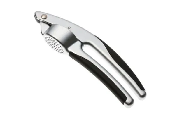 Kinghoff hvidløgspresseren er lavet af rustfrit stål af høj kvalitet. Satinstål, komfortable, skridsikre silikonehåndtag. Æstetisk og solidt håndværk. Tåler opvaskemaskine.