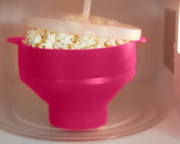 Let at bruge: Popcornskålen er nem at bruge og nem at rengøre. Silikone er et robust og holdbart materiale, og skålen kan vaskes i opvaskemaskinen.
