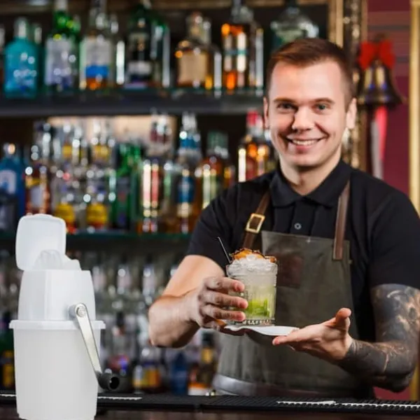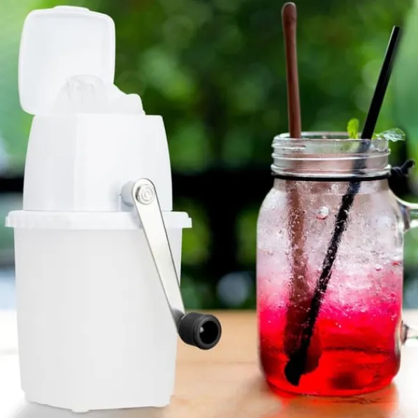 Denne manuelle isknuser gør det hurtigt og nemt at knuse isterninger, hvilket gør den perfekt til at forberede cocktails og long drinks derhjemme. Den betjenes med et simpelt håndsving og har robuste knive i rustfrit stål samt en praktisk opsamlingsbeholder til den knuste is. De skridsikre gummifødder sikrer stabil brug på alle bordplader.