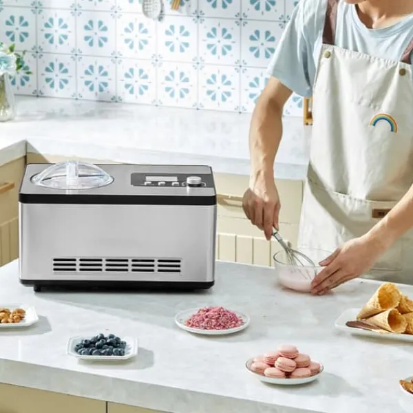- hurtig og bekvem: nyd øjeblikkelig iscremeproduktion uden behov for forudfrysning, takket være den indbyggede kompressor.