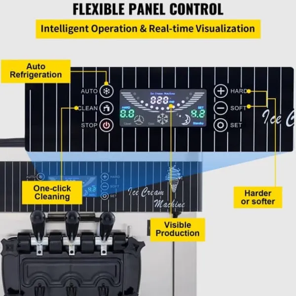 Denne softice-maskine finder bred anvendelse i restauranter, caféer, foodtrucks, fastfoodsteder, supermarkeder og andre steder med stort behov. Uden triviale skridt kan softice, yoghurt eller sorbet laves på kort tid.