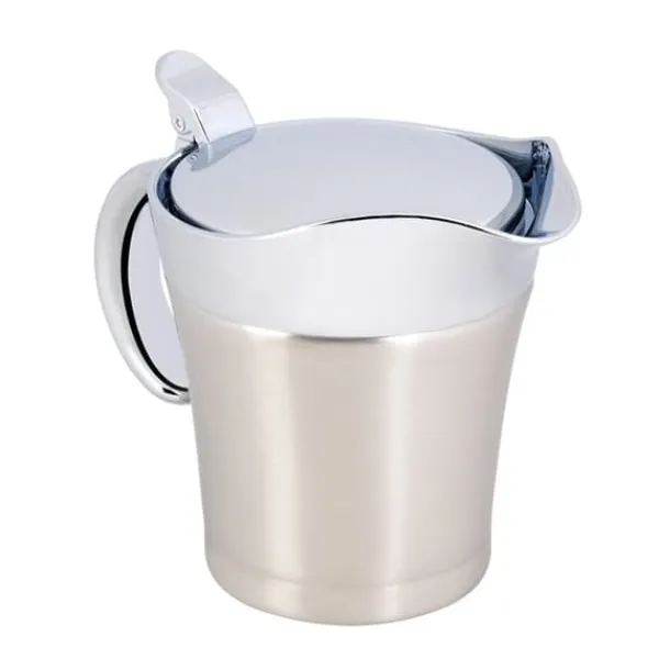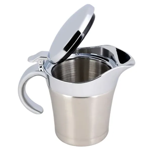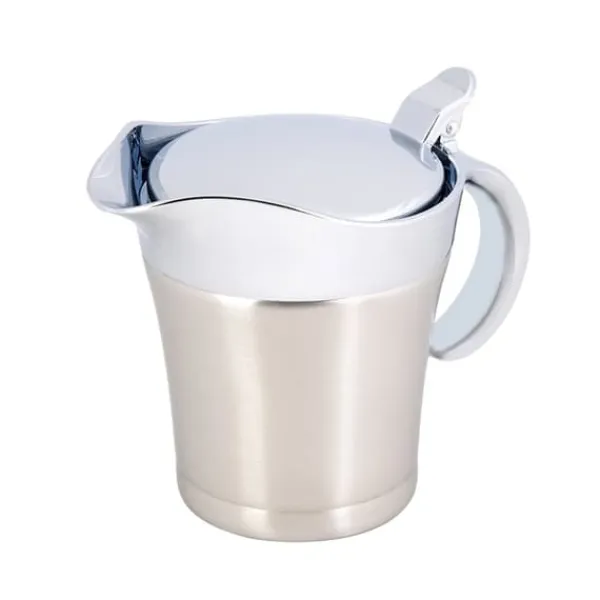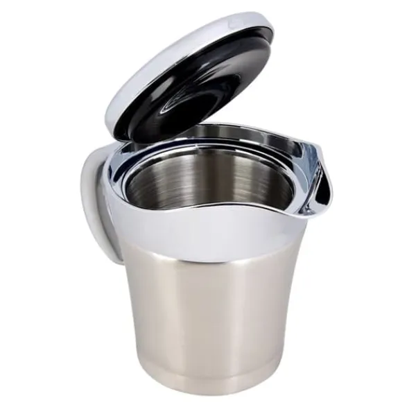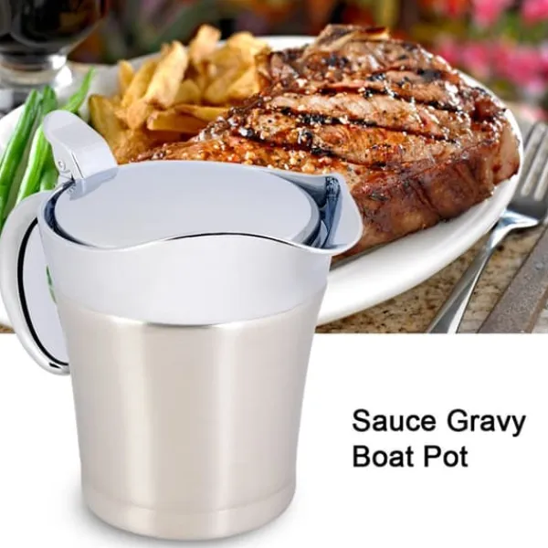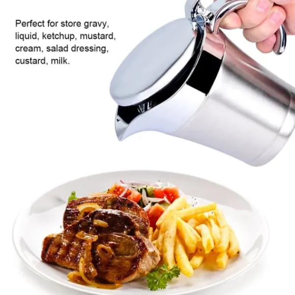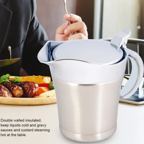 Vi præsenterer vores saucesovsgryde, lavet af rustfrit stål af høj kvalitet 304, hvilket sikrer dens rustfri, slidstærke, robuste og holdbare egenskaber. Denne gryde er dobbeltvægget isoleret, hvilket gør det muligt at holde saucer og vaniljecreme dampende varme ved bordet, samt holde væsker kolde.