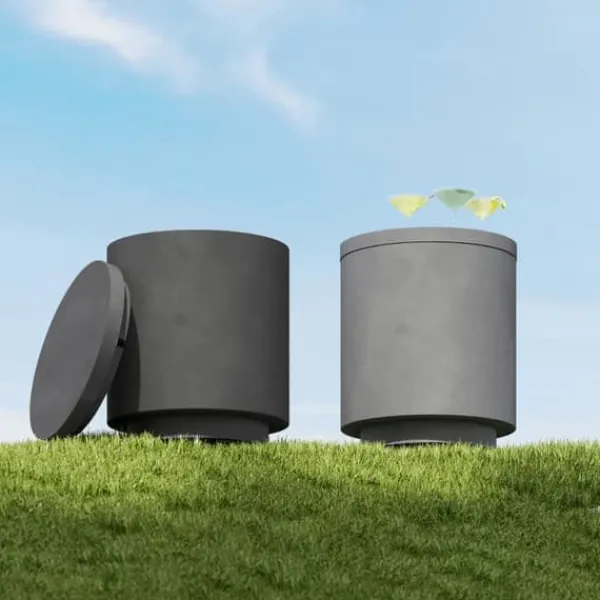 – Moderne betonelegance: Et moderne design med bløde kurver og en autentisk overflade venter på dig. Den klassiske cylindriske form i neutral grå passer perfekt ind i ethvert udendørsområde og er en berigelse for altanen, terrassen og haven.