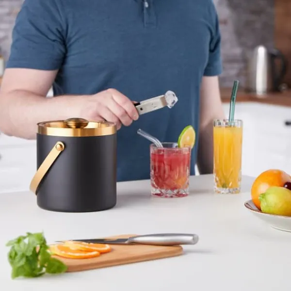 Hold dine isterninger eller knust is kolde i længere tid med denne stilfulde dobbeltvæggede isspand, perfekt til hjemmebarer, fester eller cateringarrangementer. Den isolerede konstruktion i rustfrit stål og det tætsluttende låg sikrer optimal køling, mens det praktiske bærehåndtag gør transporten nem. Det dekorative tofarvede design tilføjer et strejf af elegance til enhver indretning.