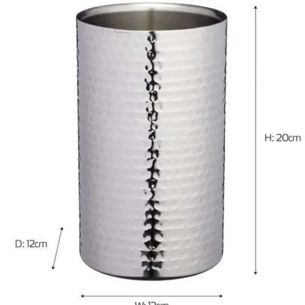 Elegant køler til vin, champagne eller vodka. Det giver dig mulighed for at holde temperaturen på alkoholen i længere tid og ser elegant ud på bordet under en fest. Vi bruger den uden isterninger. – Rustfrit stål af høj kvalitet – Dobbeltvægge forbedrer den termiske isoleringsfunktion, holder temperaturen lav i lang tid for at gøre vinen perfekt til indtagelse. – Dekorativ husstruktur og elegant udseende – Holdbar, korrosionsbestandig, let, nem at rengøre – Vedligeholdelsesinstruktioner: håndvask i varmt vand med mildt rengøringsmiddel. Skyl og tør af med en blød klud. Brug ikke skarpe værktøjer eller skuresvampe – Mål: højde ≈ 18 cm x Ø 12 cm