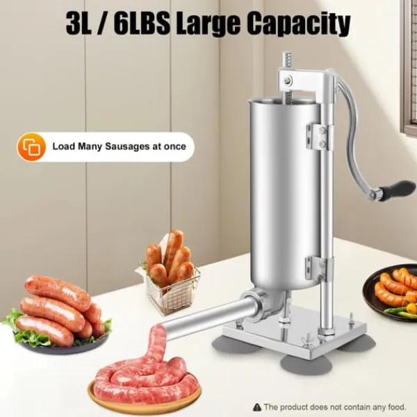Manuel pølsestopper i rustfrit stål – 3L/6 lbs med 6 fylderør