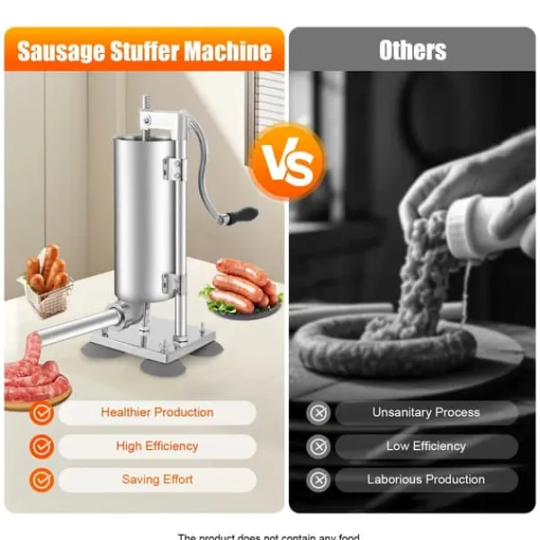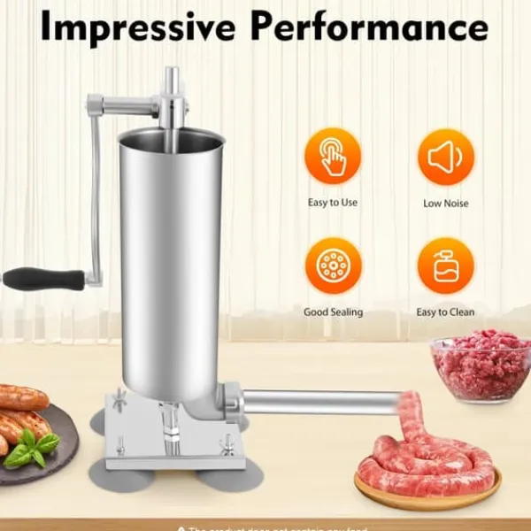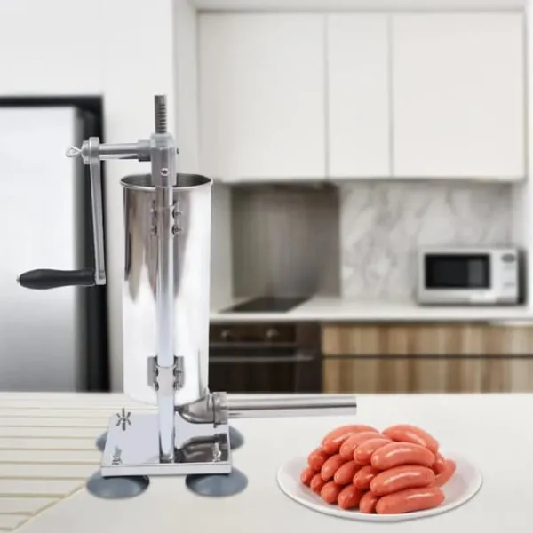 Lav dine egne lækre og mere kontrollerede pølser. Denne manuelle pølsestopper i rustfrit stål giver præcis håndsvingstyring, så du kan fylde både tynde og kraftige pølser ensartet.