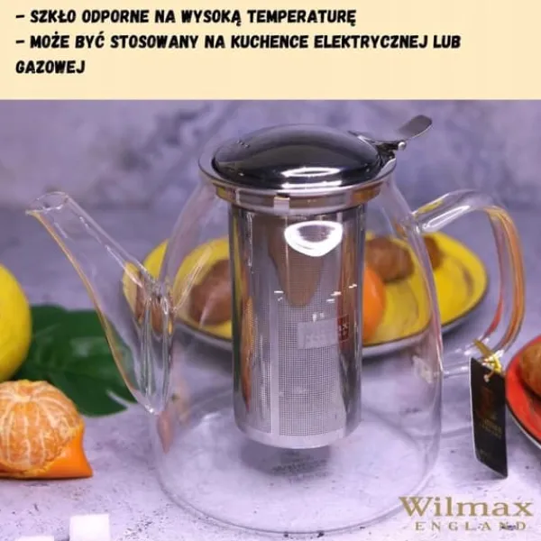 Den varmebestandige WILMAX-keddel fra Thermo glas-kollektionen er lavet af specielt varmebestandigt glas, der tåler høje temperaturer og direkte kontakt med ild. Kedlen kan koge vand direkte på komfuret (egnet til gas- eller elkomfurer). Og kedlen er også udstyret med et filter i rustfrit stål, der forhindrer te i at komme i koppen.
