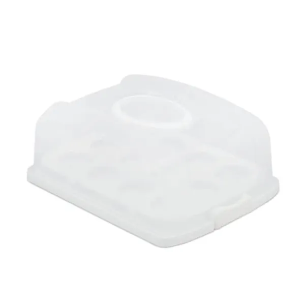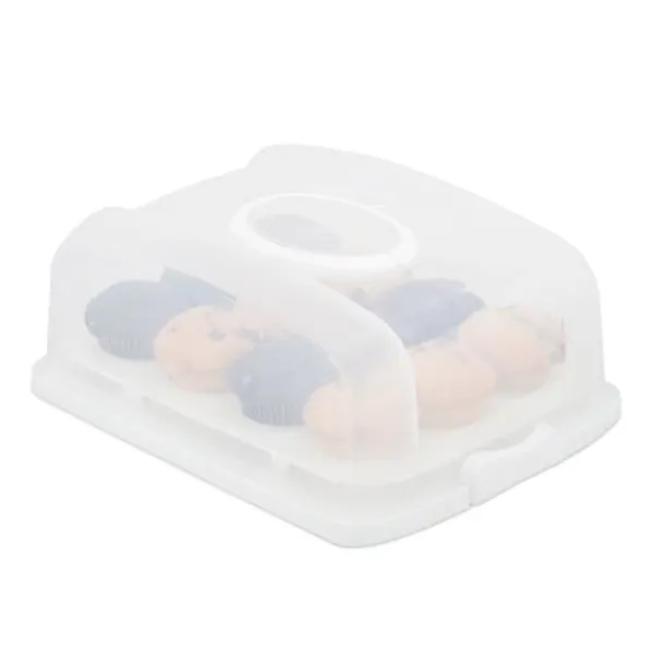 Transporter nemt kager, muffins og snacks med denne robuste, rektangulære kageboks, designet til at holde dine bagværk friske og sikre. Det integrerede håndtag og de solide lukkeklemmer sikrer komfortabel og sikker transport, mens den medfølgende indsats giver alsidig brug til cupcakes eller muffins. Ideel til fester, sammenkomster eller daglig opbevaring.