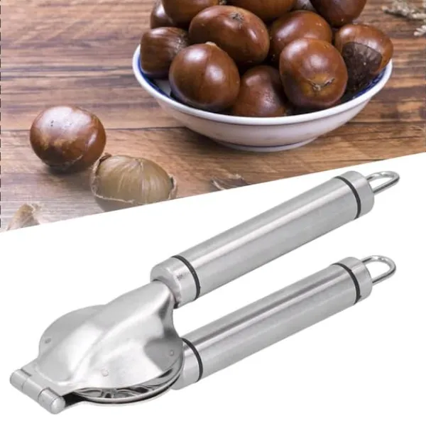 Velkommen til vores butik! Denne kastanjeklemme i høj kvalitet er fremstillet af holdbart 430 rustfrit stål, hvilket sikrer sikkerhed, robusthed og langvarig ydeevne. Den modstår deformation og korrosion, selv ved langvarig brug. Det ergonomiske design muliggør ubesværet skrælning af hårdskallede nødder, så du kan nyde lækre snacks uden besvær – ingen stikkontakt nødvendig. Med en løftestangsmekanisme og et forlænget håndtag giver dette værktøj en arbejdsbesparende oplevelse, der gør det nemt og bekvemt at knække skaller. Det flertakkede, skridsikre greb forhindrer skallerne i at glide, hvilket sikrer komfort og praktisk anvendelighed, samtidig med at det beskytter dine hænder under brug. Perfekt til en række forskellige nødder, herunder pekannødder, mandler, valnødder og paranødder, er dette alsidige værktøj et must-have for nøddeelskere. Produktdetaljer: – Varetype: Kastanjeklemme – Materiale: 430 rustfrit stål – Vægt: Ca. 203 g / 7,2 oz – Størrelse: Ca. 6 x 20 cm / 2,4 x 7,9 tommer – Inkluderet: 1 x Kastanjeklemme Tilfredshed: Vores kunder er vores højeste prioritet. Hvis du opdager problemer med produktet efter modtagelse af varerne, såsom skader eller forkert mængde, bedes du straks kontakte sælgeren. Vi gør vores bedste for at give dig tilfredsstillende eftersalgsservice.