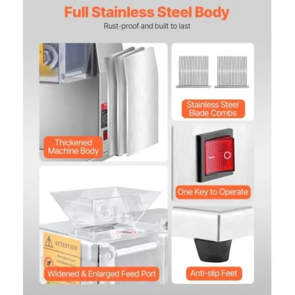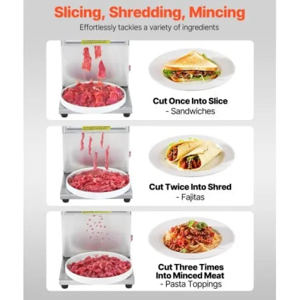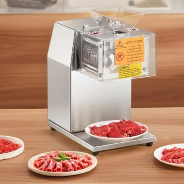 Denne kommercielle kødkuttermaskine er designet til effektiv og præcis skæring af benfrit kød og bløde grøntsager, hvilket gør den ideel til hjemmekøkkener, restauranter og supermarkeder. Dens kraftfulde motor og aftagelige rustfri stålblade sikrer hurtige, ensartede snit og nem rengøring, mens den robuste konstruktion giver langvarig holdbarhed og stabilitet.