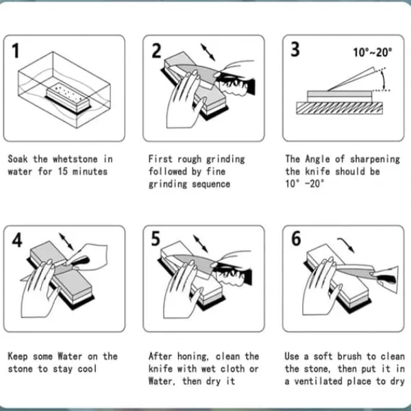 Læg stenen i blød i vand et par minutter før brug – intet behov for dyr slibeolie. Rengør med vand bagefter.