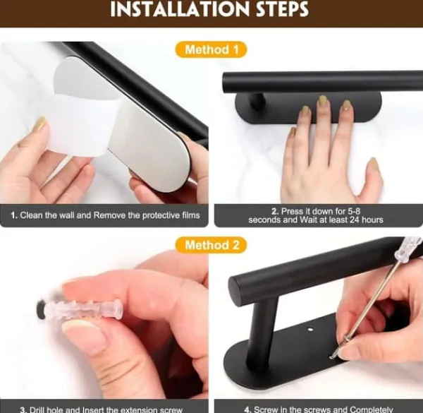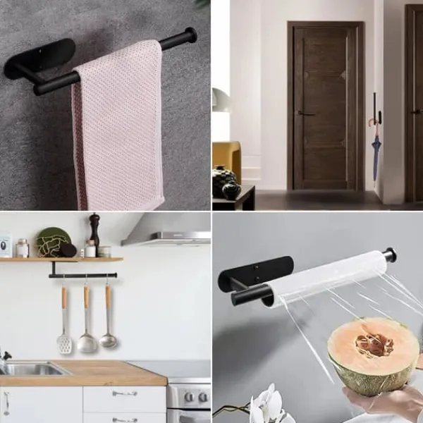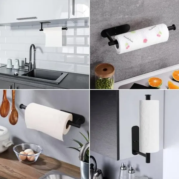 Dobbelt monteringsmetode: Der er to fastgørelsesmetoder til køkkenrulleholderen til væggen, limning og skruning. Du kan vælge den rigtige fastgørelsesmetode afhængigt af din væg. Den kan placeres lodret eller vandret. Før installationen skal du reservere plads nok til papirhåndklæderne for at forhindre, at de indsættes efter installationen.