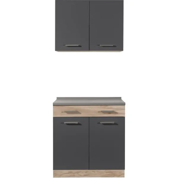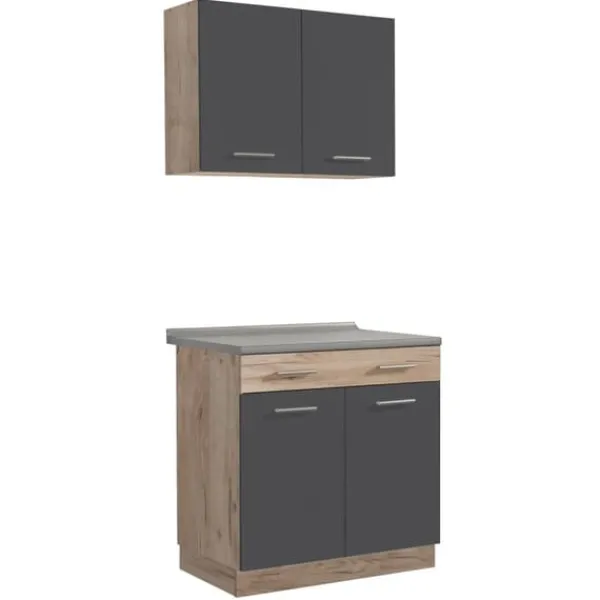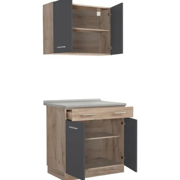 - Køkkenreoler med bordplade i moderne, høj kvalitet i grå og egetræslook