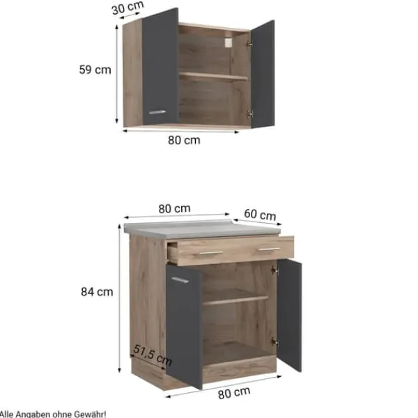 - Udvendige mål på overskab (BxHxD): 80 x 59 x 30 cm