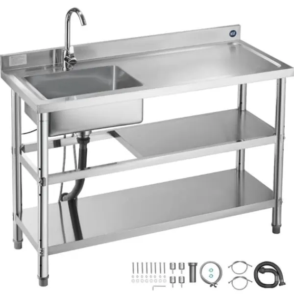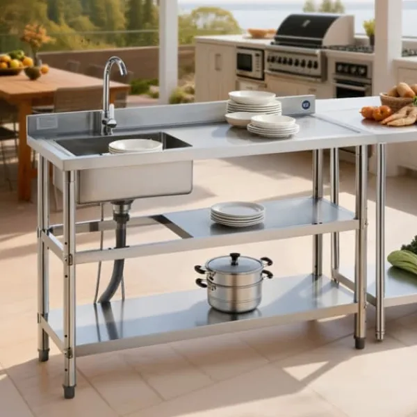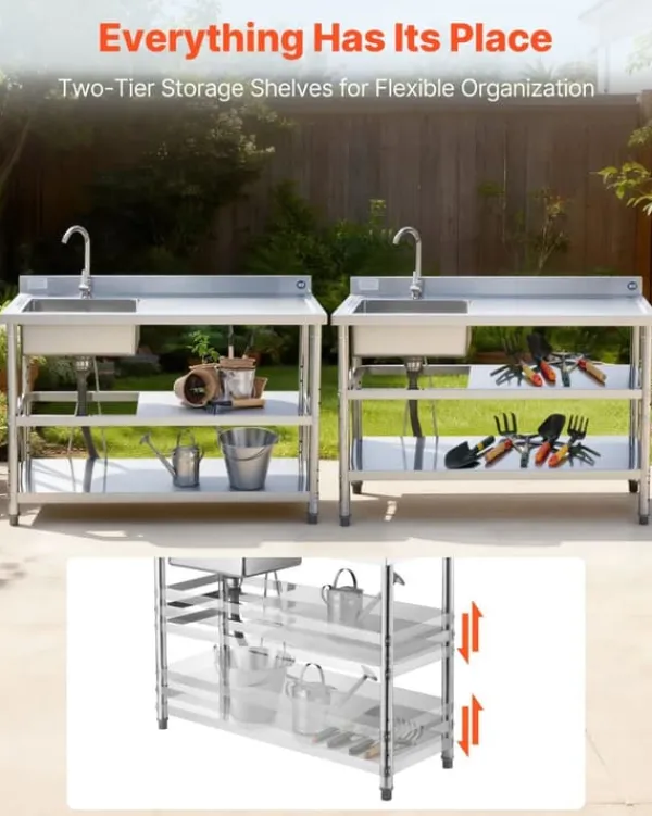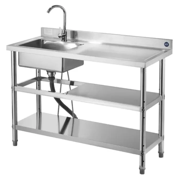 Det smarte 3-i-1 layout giver en generøs arbejdsstation til forberedelse, en dyb vask til effektiv rengøring samt en bundhylde med tre højdeniveauer, så du kan organisere udstyr og beholdere præcist efter behov.