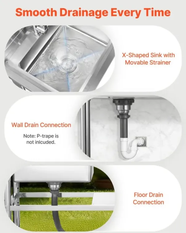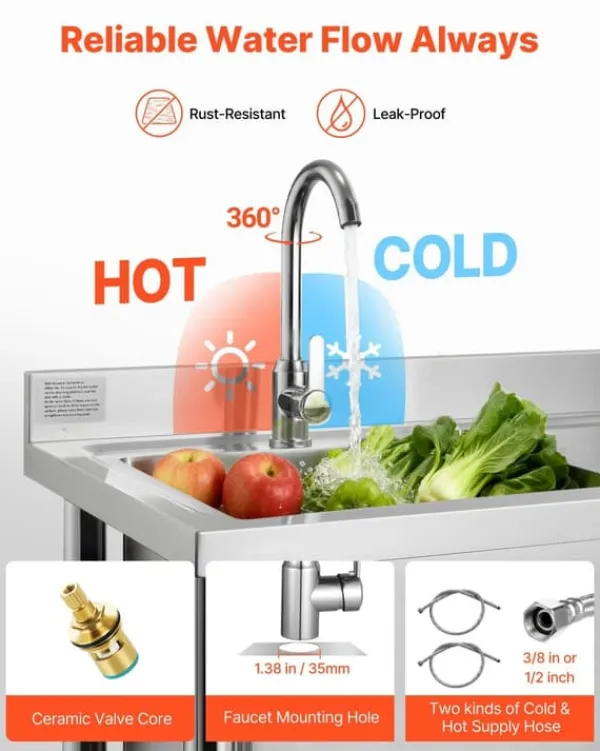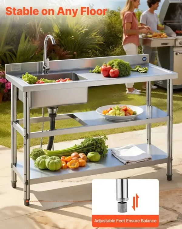 Justerbare fødder udligner ujævne underlag, så vasken står stabilt i alt fra udendørskøkken og terrasse til garage, bar, restaurant eller buffetområde.