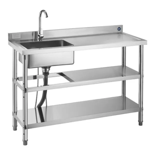 Professionel stålvask med arbejdsstation og hylde – robust, hygiejnisk og bygget til intensiv brug. Den børstede overflade i rustfrit stål er nem at rengøre, modstandsdygtig over for korrosion og ridser, og den leveres med 360° blandingsbatteri for fuld kontrol.