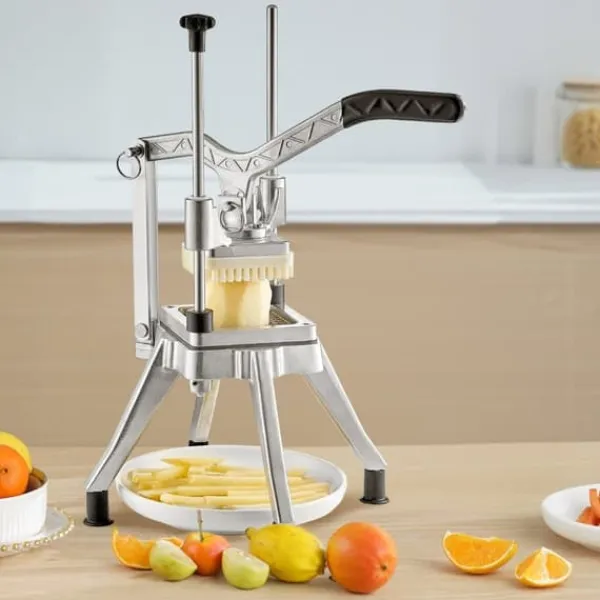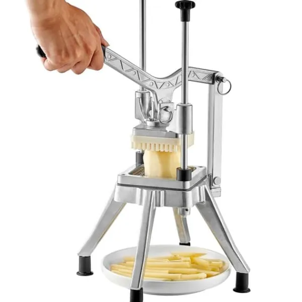 Det ergonomiske udtrækshåndtag udnytter principperne om mekanisk fordel for at spare arbejde og tid. Med et let tryk på håndtaget skæres frugt og grøntsager hurtigt gennem de skarpe klinger. Denne kommercielle hakker gør det muligt at tilberede pomfritter og grøntsagssalater uden besvær.