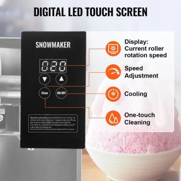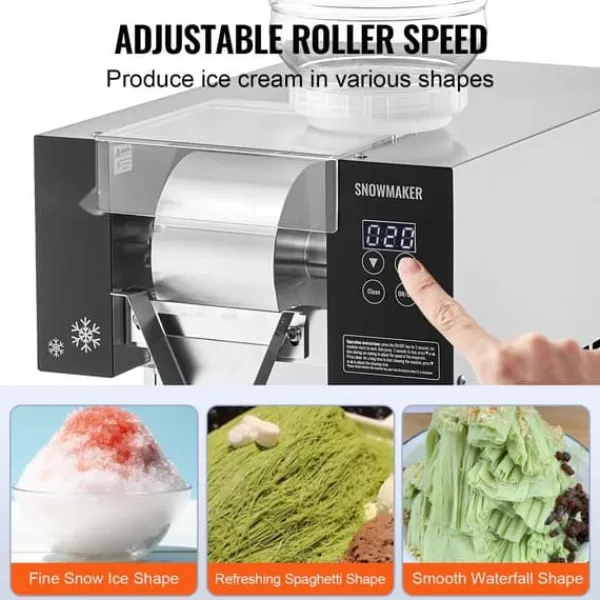 - Forskellige Isformer: Justerbar rullehastighed for at opnå forskellige teksturer af is, inklusive sneisform, spaghettiform og vandfaldsform.
